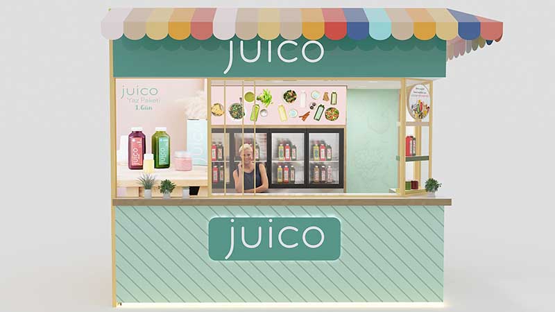 Kanyon alış veriş merkezi içi kiosk stand tasarım çalışmamız.