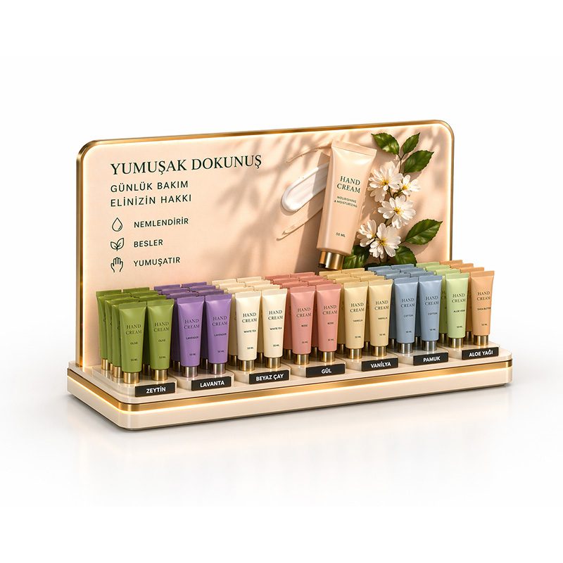 ekabetin yoğun olduğu perakende sektöründe, markanızı rakiplerinizden ayırmanın en etkili yolu doğru bir ürün teşhir standı kullanmaktır. T7 Tasarım olarak; markanıza özel, yüksek kaliteli P.O.P stand, yenilikçi display çözümleri ve dikkat çekici tanıtım standları tasarlıyor ve üretiyoruz. Kozmetik sektörünün hassas dinamiklerine uygun olarak geliştirdiğimiz Model K-1 gibi projelerimizle, sadece ürünlerinizi sergilemekle kalmıyor; ürünlerinizin prestijini artırıyor ve doğrudan satışa dönüşen unutulmaz görsel deneyimler sunuyoruz. Uzman ekibimizle mağaza içi görünürlüğünüzü zirveye taşımak için kurumsal stand ve teşhir projelerinizde yanınızdayız.